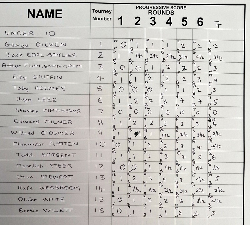 U10: 1st Todd Sargent 6/7; 2nd* Ethan Stewart 5/7; 3rd* Hugo Lees 5/7
